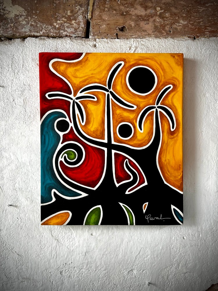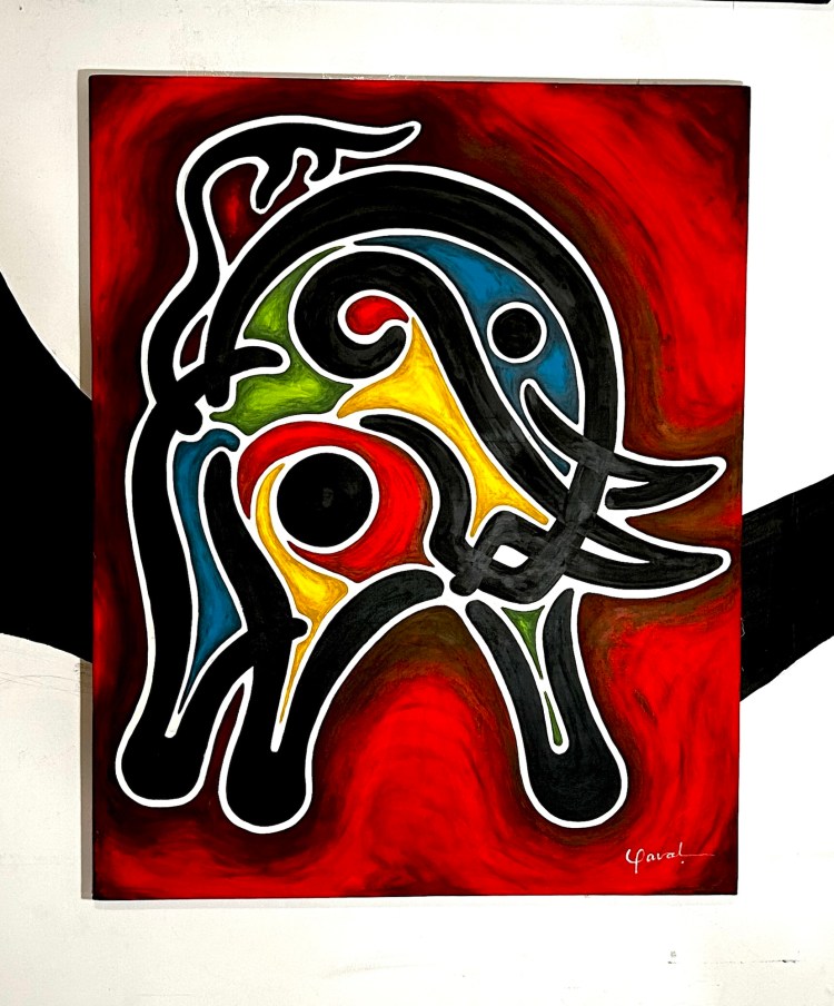 Gaval’s paintings are more than visual spectacles; they are emotional and spiritual experiences. Masks, flora, and fauna transform into living entities, breathing life into forgotten traditions while speaking a language only understood by those willing to embrace the mystery. His signature style is a controlled chaos, where every brushstroke carries the weight of ancestral memory and modern vision in equal measure.
