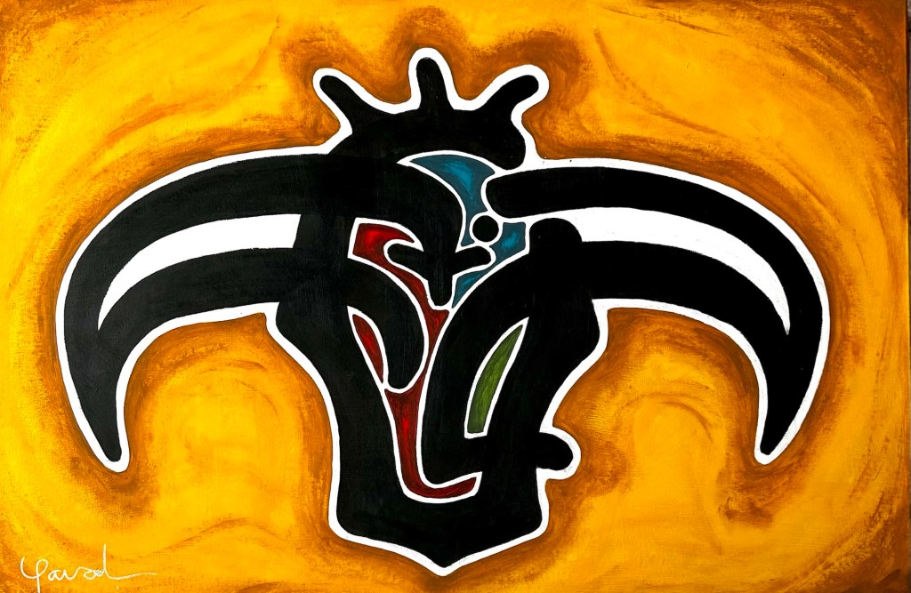 En el centro del fuego nace la forma. Es la energía antes del toro. Es fuerza contenida. Equilibrio salvaje. Guardian del instinto. Esta obra no decora un espacio: lo consagra y lo convierte en un territorio sagrado.